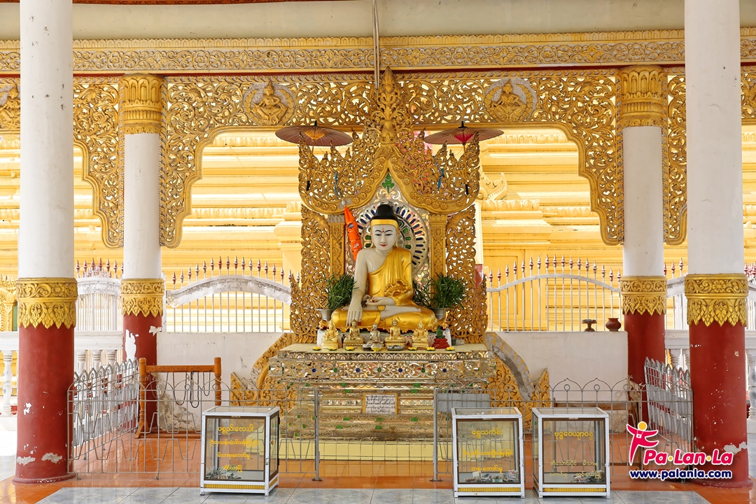 พระพุทธรูปขนาดเล็กประดิษฐานอยู่ในศาลาติดกับเจดีย์กุโสดอ