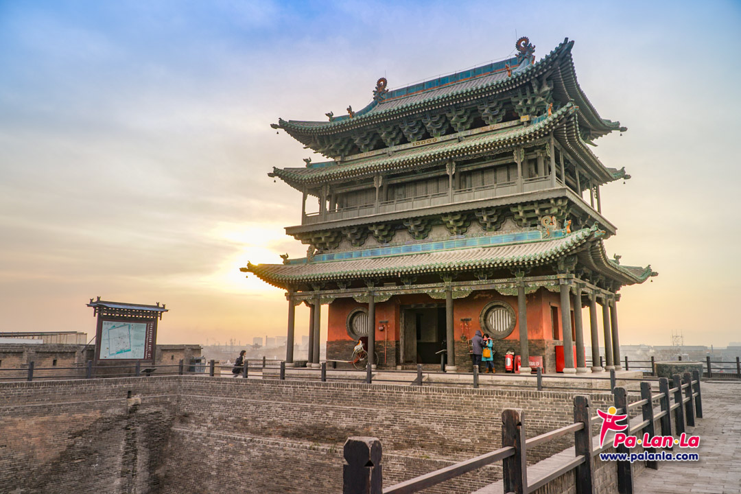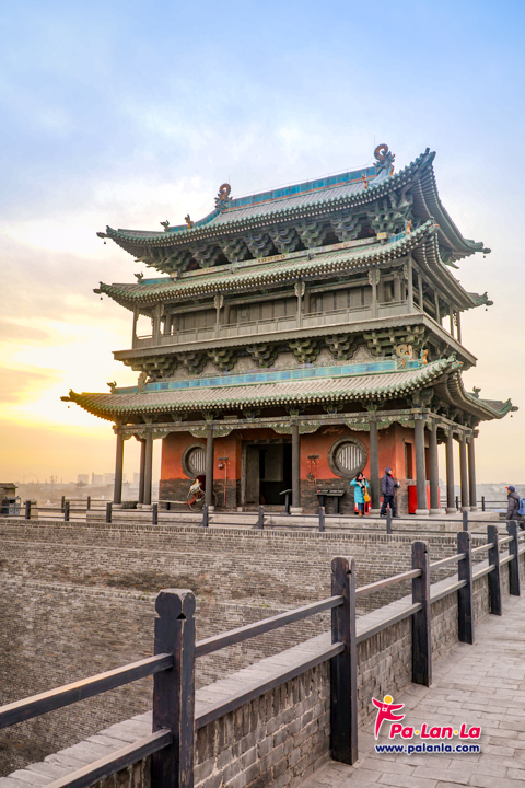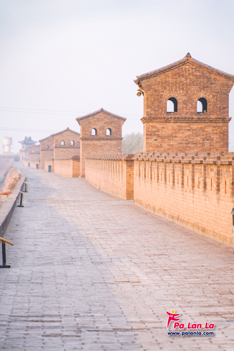 ถือเป็นหนึ่งในสถานที่สำคัญของเมืองโบราณผิงเหยา เนื่องจากข้อสันนิฐานว่ากำแพงเมืองแห่งนี้ก่อสร้างขึ้นเป็นครั้งแรกตั้งแต่สมัยราชวงศ์โจวตะวันตก ก่อนจะได้รับการสร้างทับครั้งยิ่งใหญ่ในช่วงต้นของสมัยราชวงศ์หมิง โดยกำแพงมีความยาวรวมกว่า 6 กิโลเมตร และมีหอสังเกตการณ์ทุกๆ 50 – 100 เมตร รวมทั้งหมด 72 หอ ซึ่งถือเป็นความน่ามหัศจรรย์อย่างหนึ่งเนื่องจากตรงกับหลักฮวงจุ้ยศาสตร์ของจีนพอดี