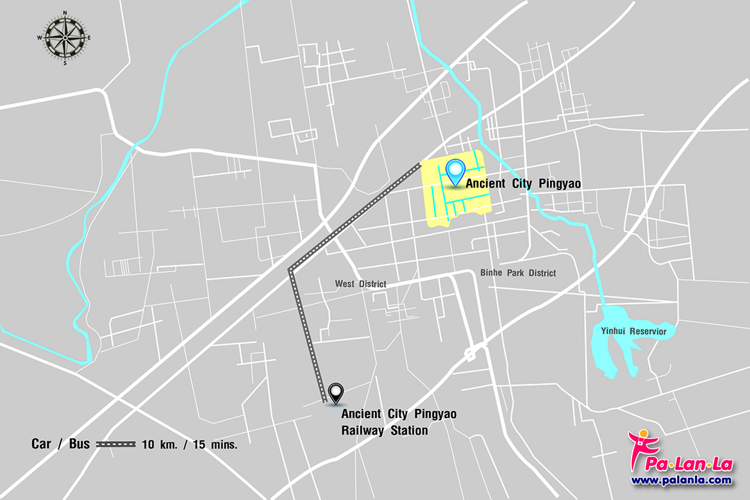 จากเมืองไท่หยวน – เมืองโบราณผิงเหยา (太原市 -平遥古城站) มีระยะห่างเพียง 96 กิโลเมตร และใช้เวลาในการเดินทางประมาณ 2 ชั่วโมง