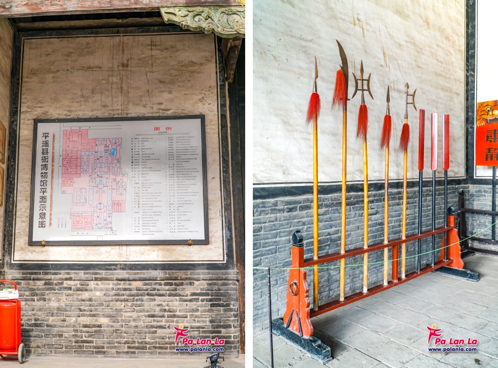 แผงผังที่ว่าการอำเภอเมืองผิงเหยาในอดีตซึ่งปัจจุบันเป็นสถานที่จัดแสดงและให้ความรู้เกี่ยวกับวิถีชีวิตของชาวจีนในอดีตพร้อมสิ่งจัดแสดง