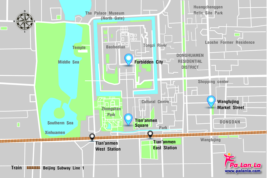 และหลังจากมาถึงเมืองปักกิ่งแล้ว นักท่องเที่ยวสามารถเดินทางต่อไปยังพระราชวังต้องห้าม ซึ่งถือว่าตั้งอยู่ ใจกลางเมืองปักกิ่ง ได้หลายวิธี อาทิ