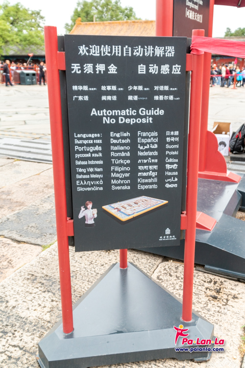 ป้ายอธิบายเกี่ยวกับแอพลิเคชั่นของพระราชวังต้องห้ามซึ่งมีภาษาอังกฤษกำกับ