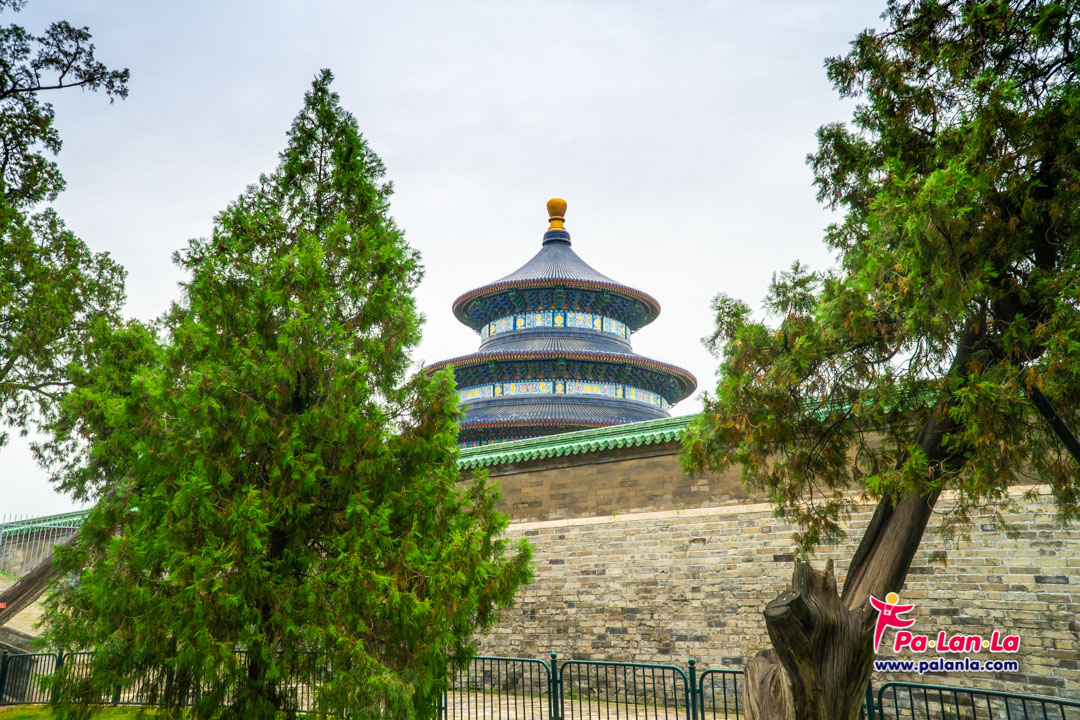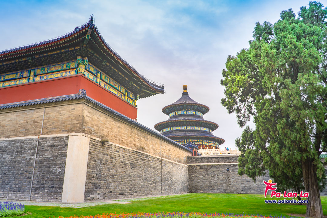 หอสักการะฟ้าเทียนถานอันยิ่งใหญ่เมื่อมองจากตำหนักที่อยู่ด้านข้าง