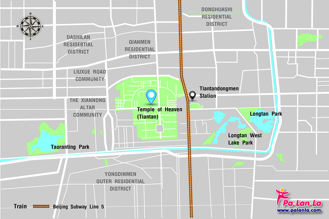 - รถไฟฟ้าใต้ดิน นักท่องเที่ยวสามารถเลือกใช้บริการรถไฟฟ้าใต้ดิน สาย 5 ซึ่งเป็นหนึ่งในเส้นทางที่ให้บริการภายในเมืองปักกิ่ง เลือกลงที่ สถานี Tiantandongmen ซึ่งอยู่ใกล้กับประตูทางเข้าด้านตะวันออกของหอสักการะฟ้าเทียนถาน ทั้งนักท่องเที่ยวสามารถตรวจสอบรายละเอียดเส้นทาง,รอบเวลาในการวิ่ง และอัตราค่าโดยสารของรถไฟใต้ดินได้ที่ https://www.bjsubway.com/en/