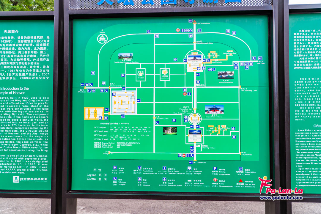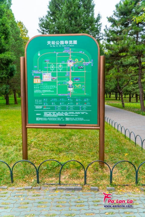 ป้ายแสดงเส้นทางสำหรับรถไฟฟ้าและแหล่งบริการรถเข็น, ห้องน้ำ รวมถึงโทรศัพท์สาธารณะภายในหอสักการะฟ้าเทียนถาน