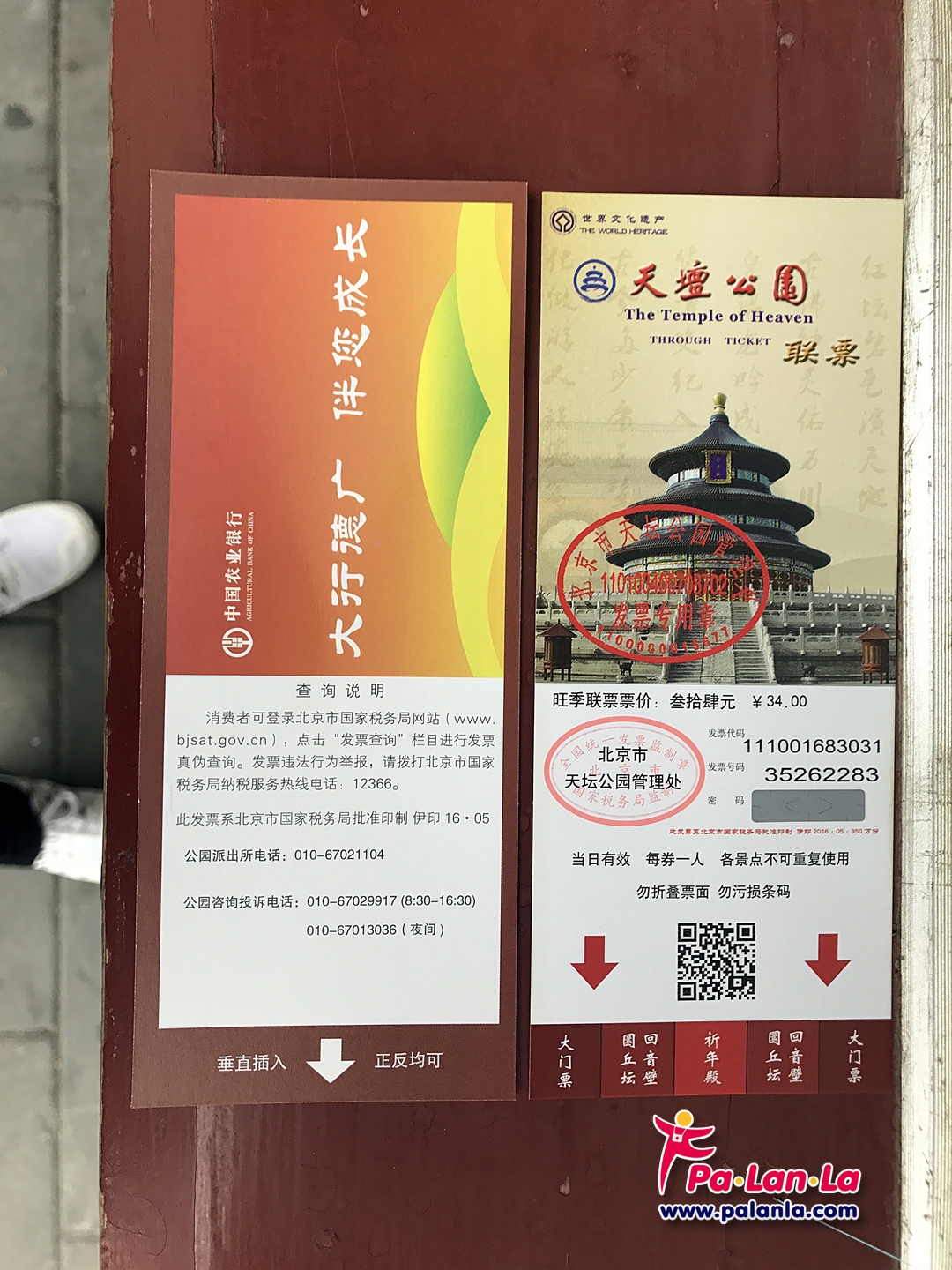 นักท่องเที่ยวสามารถศึกษารายละเอียดเพิ่มเติมเกี่ยวกับบัตรผ่านเข้าชม รวมถึงส่วนลดสำหรับผู้สูงอายุและนักศึกษาเพิ่มเติมได้ที่ http://www.tiantanpark.com/cn/tabs/showdetail.aspx?tabid=800004&selectsingle=1