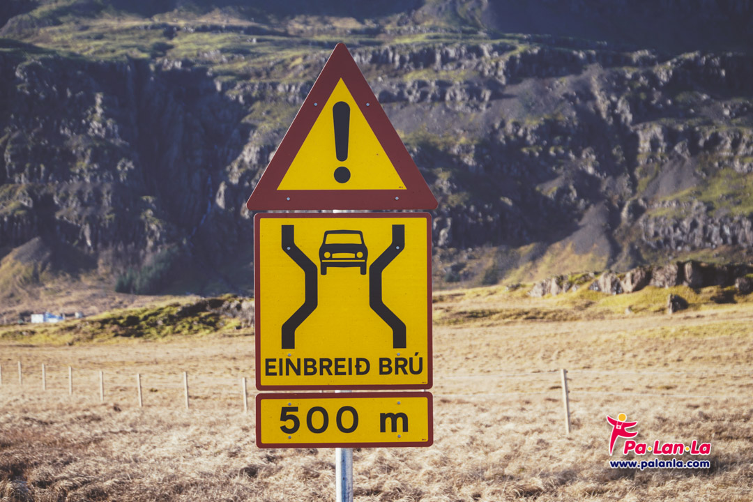 เครื่องหมายจราจรในประเทศไอซ์แลนด์ โดยทั่วไปเป็นตามแบบมาตรฐานสากล แต่อาจมีสัญลักษณ์บางอย่างที่นักท่องเที่ยวไม่คุ้นเคย เช่น Single - lane Bridge หรือสะพานเลนเดียว ที่นักท่องเที่ยวสามารถพบได้บ่อยๆ เมื่อพบสัญลักษณ์นี้ ผู้ขับจะต้องชะลอรถให้อีกฝ่ายที่มาถึงก่อนเป็นฝ่ายไปก่อน เนื่องจากรถจะไม่สามารถแล่นสวนกันได้ ฉะนั้นนักท่องเที่ยวจึงต้องใช้ความระมัดระวัง และมีน้ำใจแก่เพื่อนร่วมถนน และเนื่องจากถนนในไอซ์แลนด์นั้นไม่ได้กว้างและไม่มีไหล่ถนนเหมือนถนนตามต่างประเทศ ฉะนั้น นักท่องเที่ยวต้องมั่นใจว่าเวลาจอดรถไม่ได้จอดกินเลนถนนมากเกินไป เพราะอาจทำให้เกิดอุบัติเหตุขึ้นได้