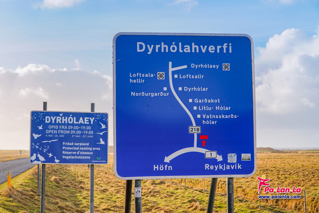 ป้ายสัญลักษณ์บอกทางไป Dyrholaey