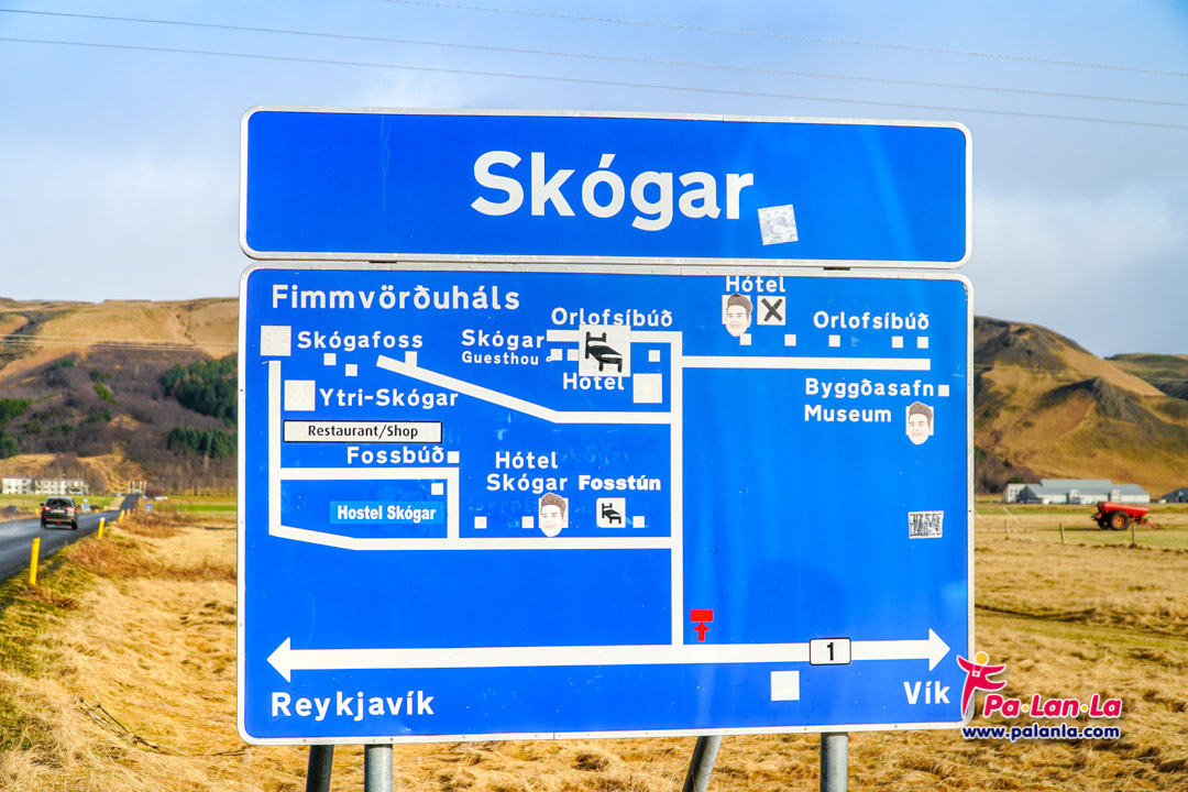 จากเมืองเรคยาวิกไปยังสโกการ์ฟอสส์ ใช้เส้นทาง Vesturlandsvegur/ถนนหมายเลข 49 ระยะเวลา 3 นาที (1.3 กม.) จากนั้นตาม Þjóðvegur 1, ถนนหมายเลข 1 และ Þjóðvegur ไปทาง Skógar มุ่งไป Suðurland ระระเวลา 1 ชม. 51 นาที (146 กม.) เดินทางต่อไปบน Skógar ขับไปทาง Skógafoss/Skógarfoss ระยะเวลา 4 นาที (1.4 กม.)