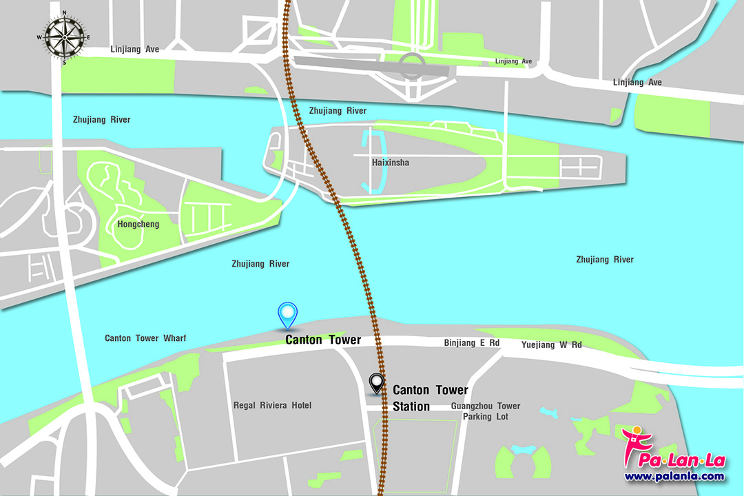 - รถไฟใต้ดิน จากตัวเมืองกวางโจว ขึ้นรถไฟใต้ดินสาย 3 (สีส้ม) ไปลงที่สถานี Canton Tower ออกที่ทางออก A ค่ารถไฟใต้ดินในเมืองกวางโจวมีราคาเริ่มต้นที่ 2 หยวน และเพิ่มขึ้น 1 หยวนทุกๆ 6 กิโลเมตร