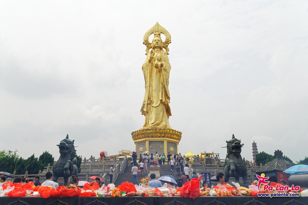 - รูปปั้นเจ้าแม่กวนอิม เป็นรูปปั้นที่เพิ่งถูกสร้างขึ้นในปี 1994 มีความสูงทั้งหมด 40.88 เมตร สีทองอันงดงามของตัวรูปปั้นมาจากการหล่อด้วยทองเหลืองหนัก 120 ตัน ผสมกับทองคำแท้อีก 180 แท่ง ซึ่งงบประมาณในการสร้างทั้งหมดมาจากการร่วมบริจาคโดยชาวจีนทั้งในและนอกประเทศ รวมถึงหน่วยงานต่างๆของประเทศจีน