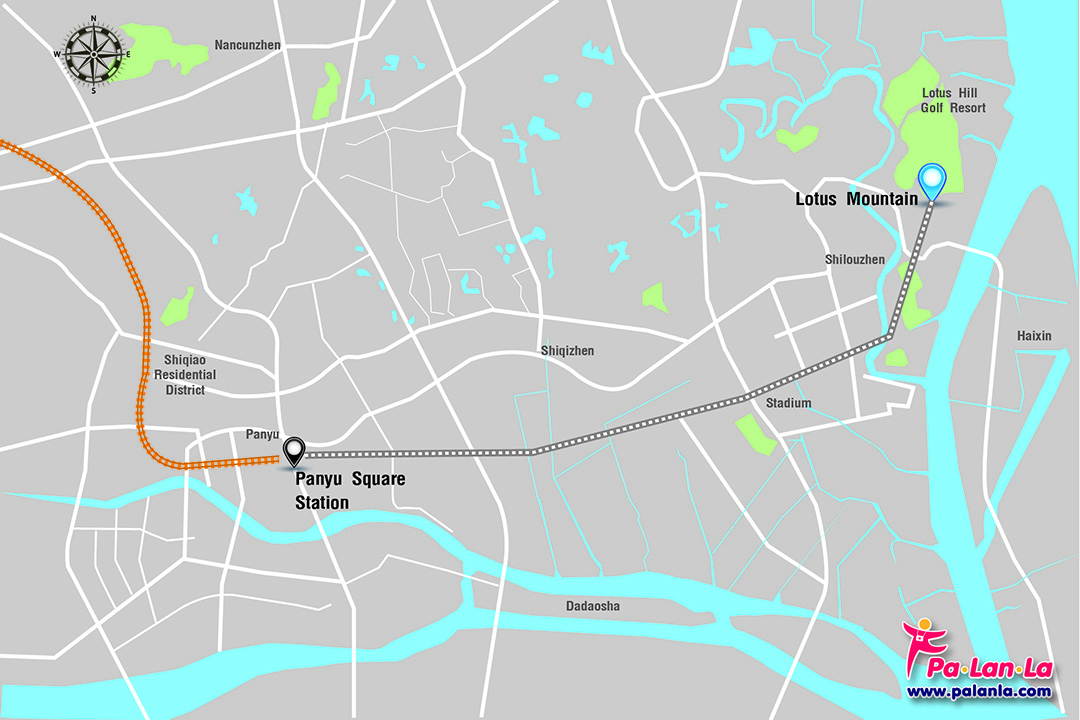 - รถไฟใต้ดิน จากตัวเมืองกวางโจว ขึ้นรถไฟใต้ดินสาย 3 (สีส้ม) ไปลงที่สถานี Panyu Square จากนั้นต่อรถบัสหมายเลข 93 ไปลงที่ป้าย Lianhuashan