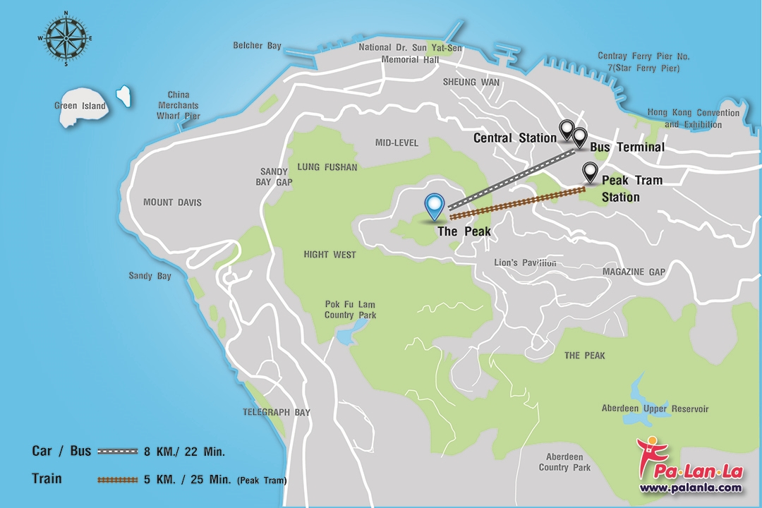 - รถราง รถราง หรือ The Peak Tram เป็นวิธีการเดินทางที่ค่อนข้างได้รับความนิยมจากนักท่องเที่ยว และถือเป็นหนึ่งจุดขายอันเป็นเอกลักษณ์ของเดอะพีค โดยจุดขึ้นรถรางนั้นมีชื่อว่า Peak Tram Lower Terminus ตั้งอยู่ห่างจากสถานี MTR Central ประมาณ 900 เมตร ตั๋วสำหรับไป-กลับ ราคา HK$ 52