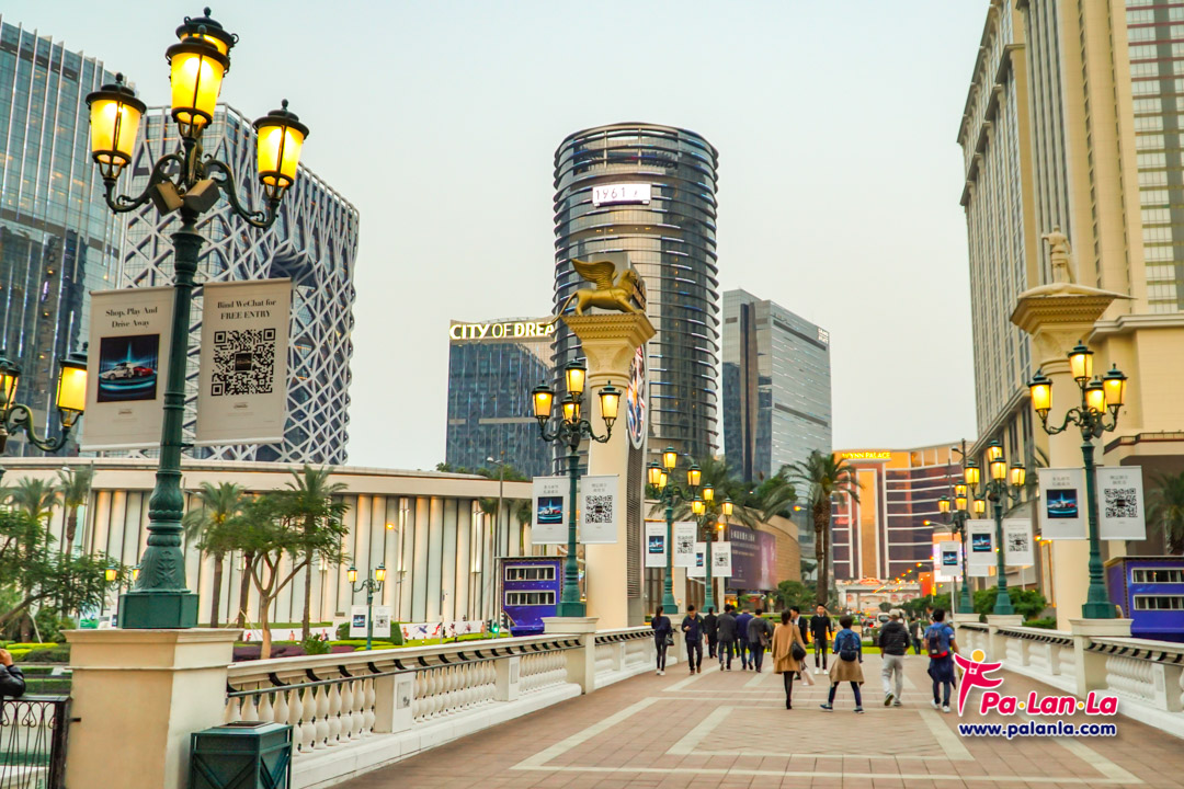 ทางเข้าสู่เดอะเวเนเชี่ยนมาเก๊าอันเลิศหรูและเต็มไปด้วยผู้คนที่บันทึกภาพเป็นที่ระลึก