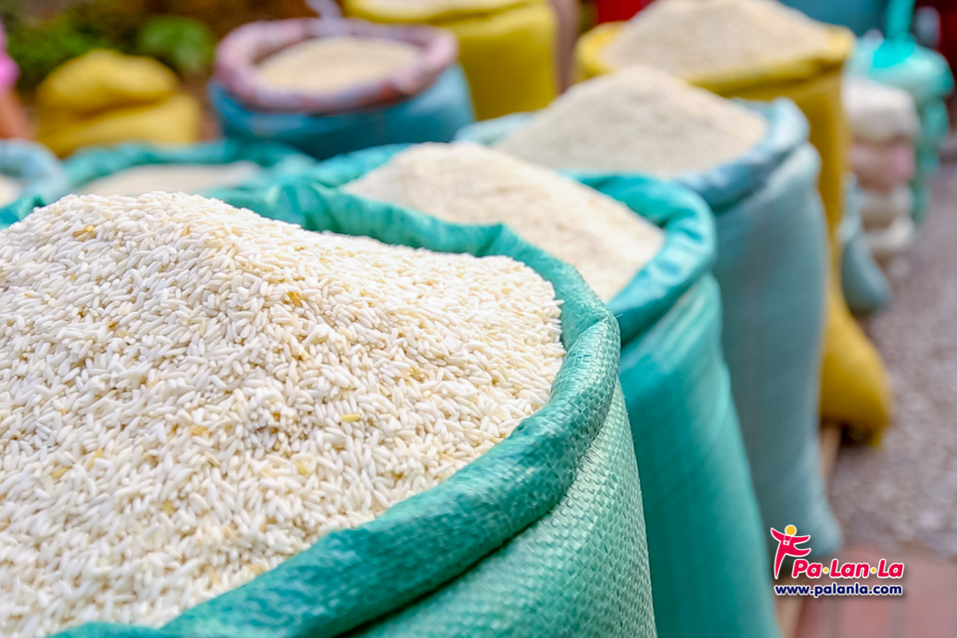 เมล็ดข้าวสารของลาวที่จำหน่ายอยู่ในตลาดเช้า