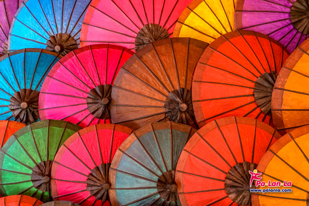 วิวจากทางขึ้นพระธาตุพูสีด้านตรงข้ามทำให้มองเห็นร่มร้านค้าที่ตัดสลับกันในตลาดมืด
