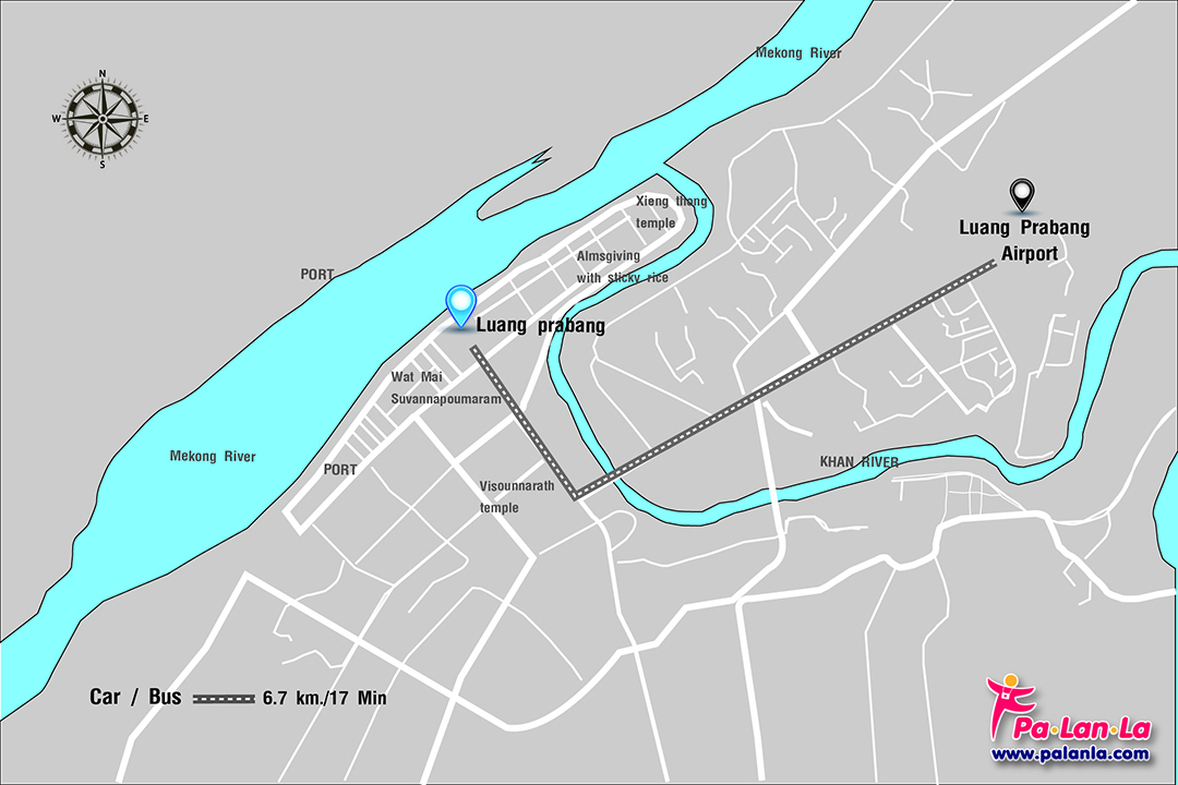 ***เนื่องจากวัดพระธาตุพูสีเป็นบริเวณจุดใจกลางเมืองจึงสามารถระบุปลายทางเป็นหลวงพระบางได้เช่นกัน