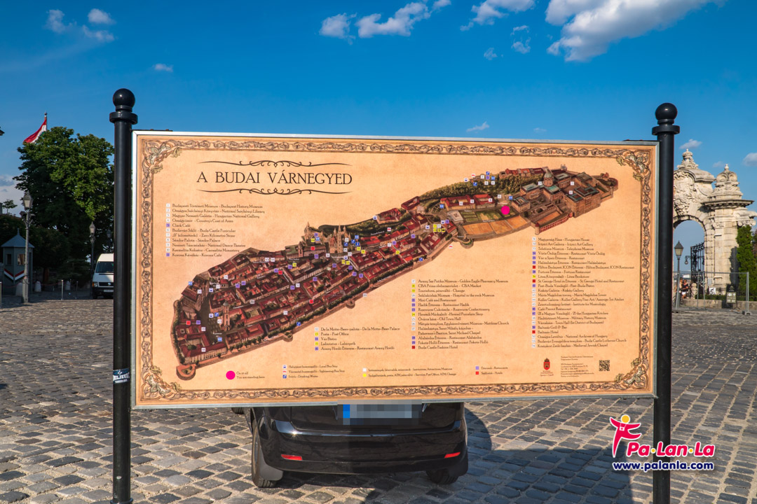 แผนผังของปราสาทบูดาที่ปัจจุบันกลายเป็นทั้งพิพิธภัณฑ์, หอศิลป์, หอสมุด รวมถึงคาเฟ่อีกหลายร้าน