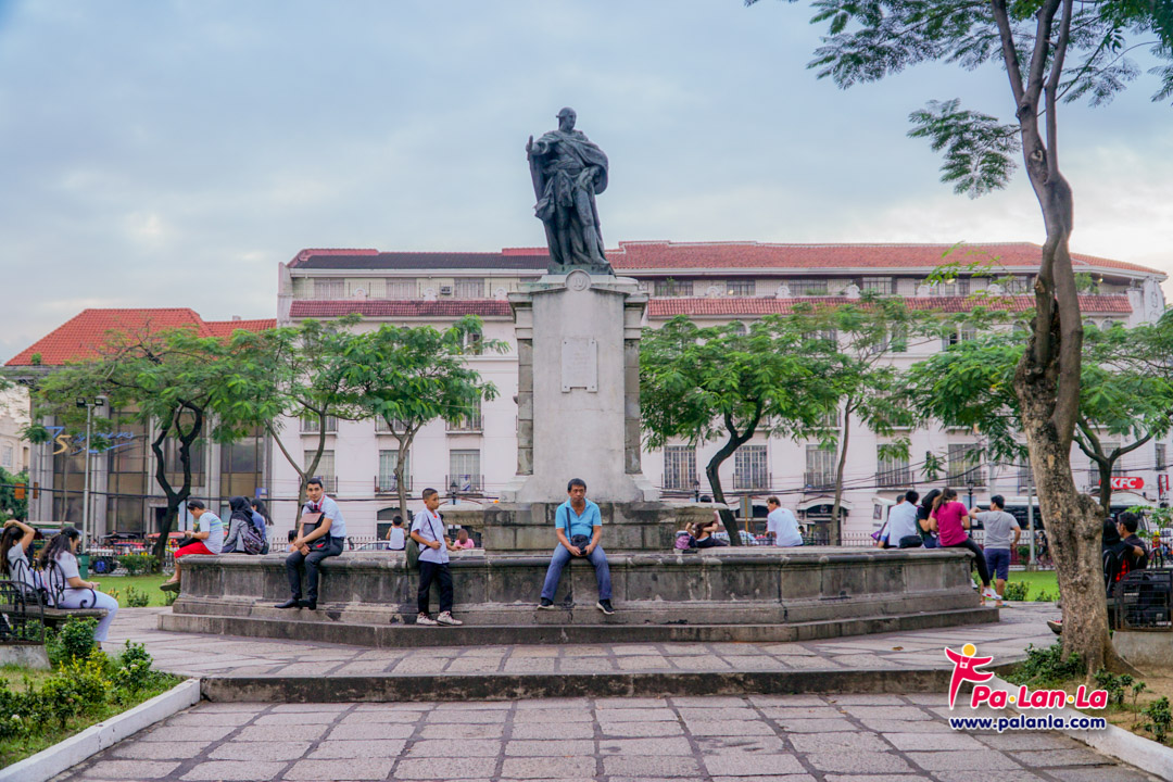 บริเวณด้านหน้ามหาวิหารมะนิลาจะมีรูปปั้นสำคัญตั้งตระหง่านอยู่อย่างโดดเด่น