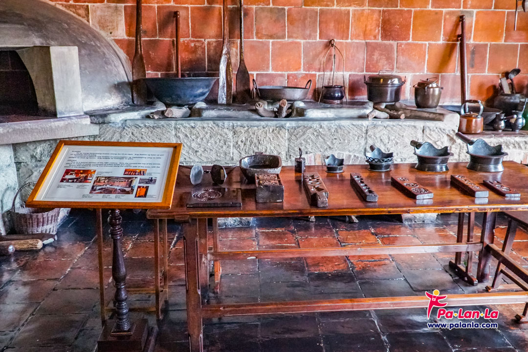 ชั้น 1 เดินชมมีด ช้อนส้อม หม้อและกระทะสมัยโบราณ รวมทั้งแม่พิมพ์ทำอาหารและเตาถ่านยุคศตวรรษที่ 18 ชมถังเก็บน้ำฝนสำหรับกักเก็บน้ำไว้ใช้ในคฤหาสน์ตลอดทั้งปี จากนั้นแวะชมห้องรับประทานอาหารที่มีโต๊ะรับประทานอาหารขนาด 18 ที่นั่ง พัดลมเพดานที่ทำงานด้วยแรงคน ทำให้รู้สึกเย็นสบาย