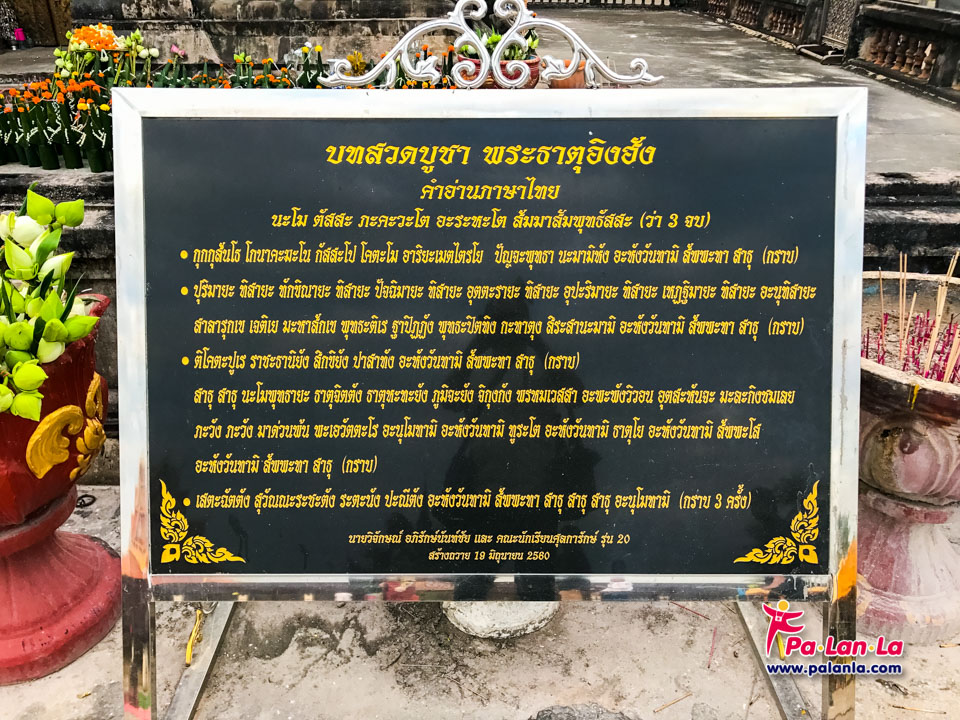 แผนสลักบทสวดบูชาพระธาตุอิงฮัง โดยเป็นคำอ่านภาษาไทย