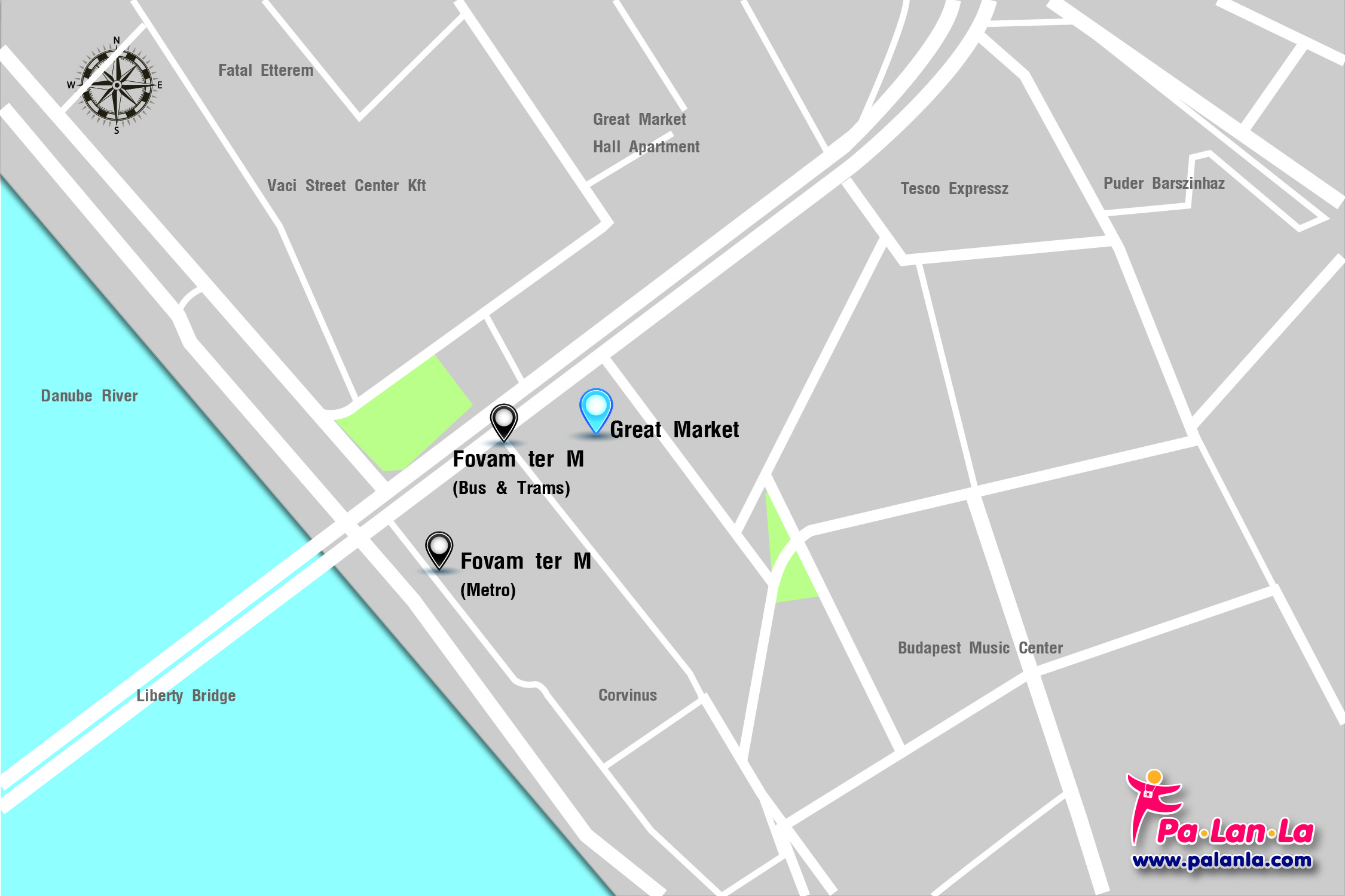 - รถโดยสารสาธารณะ นักท่องเที่ยวสามารถเดินทางไปยังได้ด้วยรถโดยสารสาธารณะ สาย 15, 83, 115, 47, 48 และ 49 เลือกลงที่ป้าย Fővám tér M ที่อยู่ใกล้ๆกับเกรท มาร์เก็ท โดยสามารถตรวจสอบรายละเอียดเกี่ยวกับเส้นทางโดยสารเพิ่มเติมได้ที่ https://bkk.hu/en/timetables/