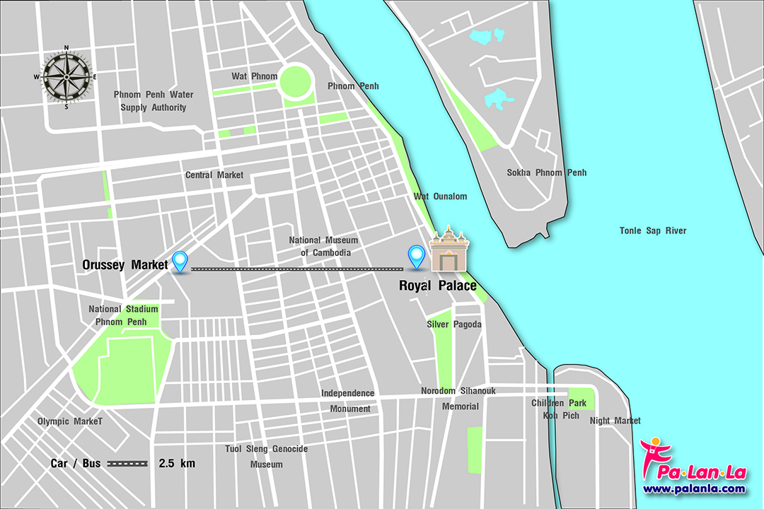 แผนที่แสดงที่ตั้งของตลาดโอรุสซี (Orussey Market)