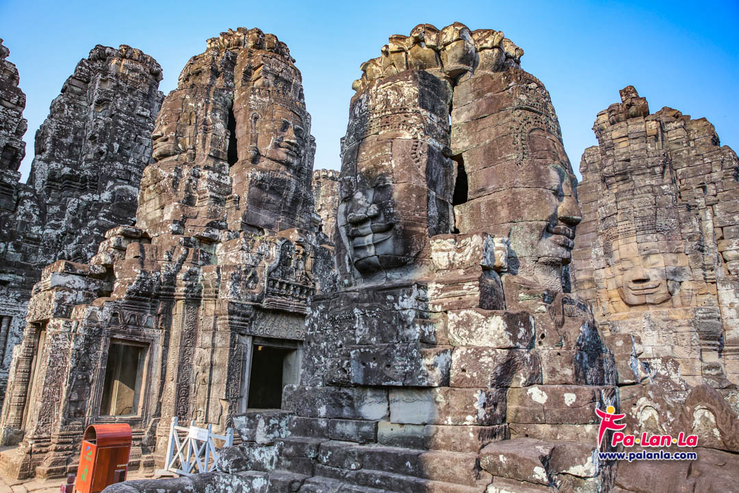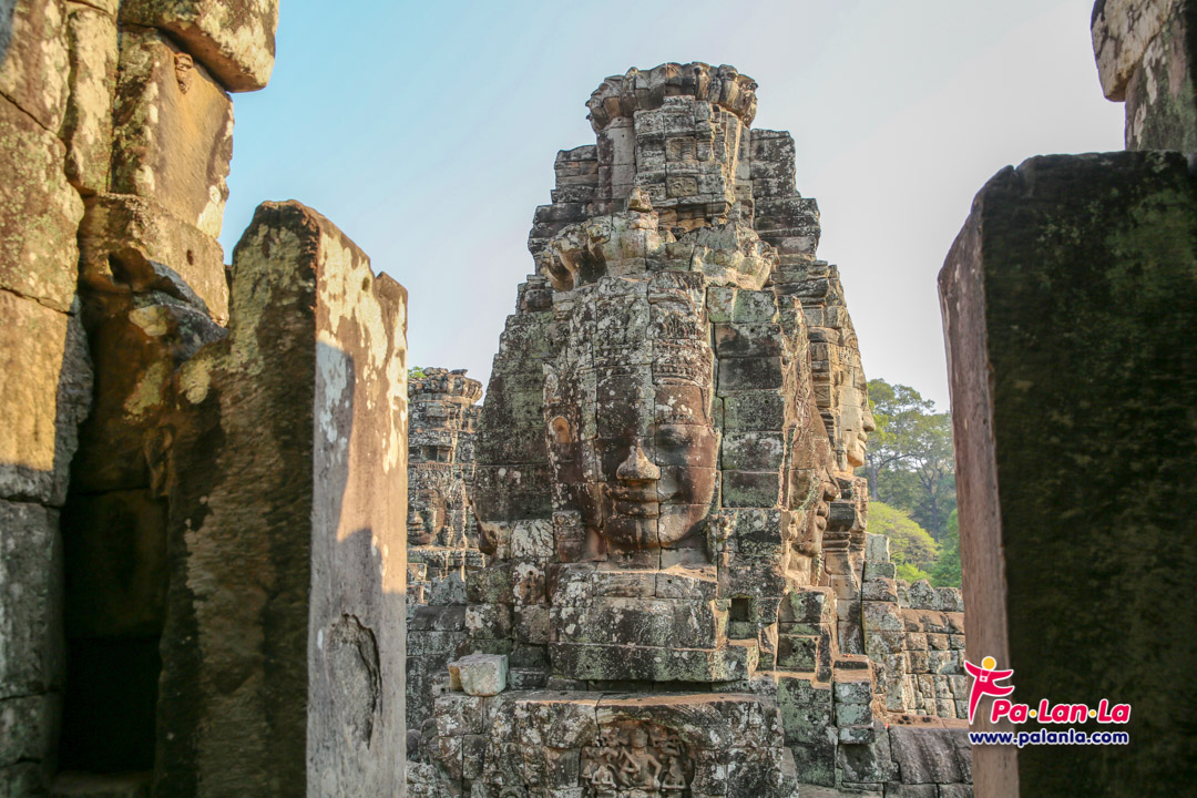 นักท่องเที่ยวที่มาเยือนปราสาทบายน ย่อมต้องไม่พลาดที่จะเก็บภาพวงพักตร์ปริศนาเหนือปราสาท หรือที่เรียกว่า “พระพักตร์แห่งบายน” โดยเดิมเชื่อว่าประดิษฐานอยู่ตามยอดปราสาททั้งสิ้น 54 ยอด แต่ปัจจุบันพังทลายลงมาแล้วเหลือเพียง 37 ยอด ถึงอย่างนั้นความมหัศจรรย์ที่พลาดไม่ได้ของพระพักตร์แห่งบายนก็คือการที่ไม่ว่าจะอยู่มุมไหนของปราสาท ก็จะรู้สึกเหมือนพระพักตร์นั้นกำลังมองมาเสมอนั่นเอง