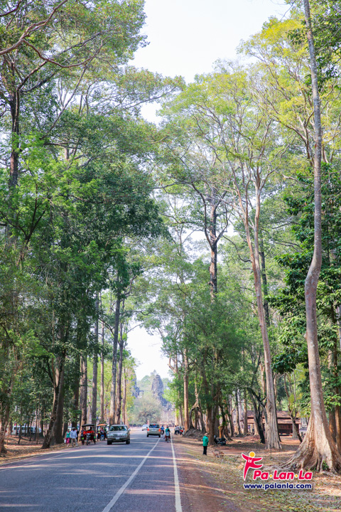 ปราสาทบายนในวันนี้ที่แม้ไม่มีต้นไทรแต่ยังมีร่มไม้เขียวชอุ่มร่มรื่น