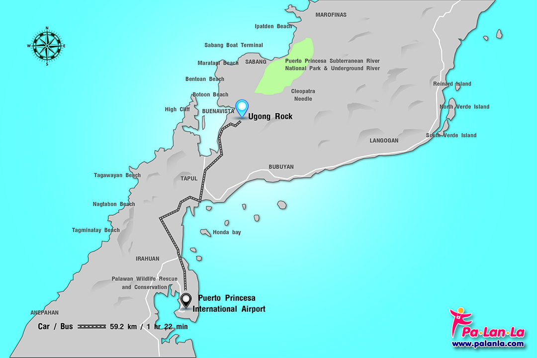 แผนที่ตั้งของ Ugong Rock บนแผนที่ของปาลาวัน ประเทศฟิลิปปินส์