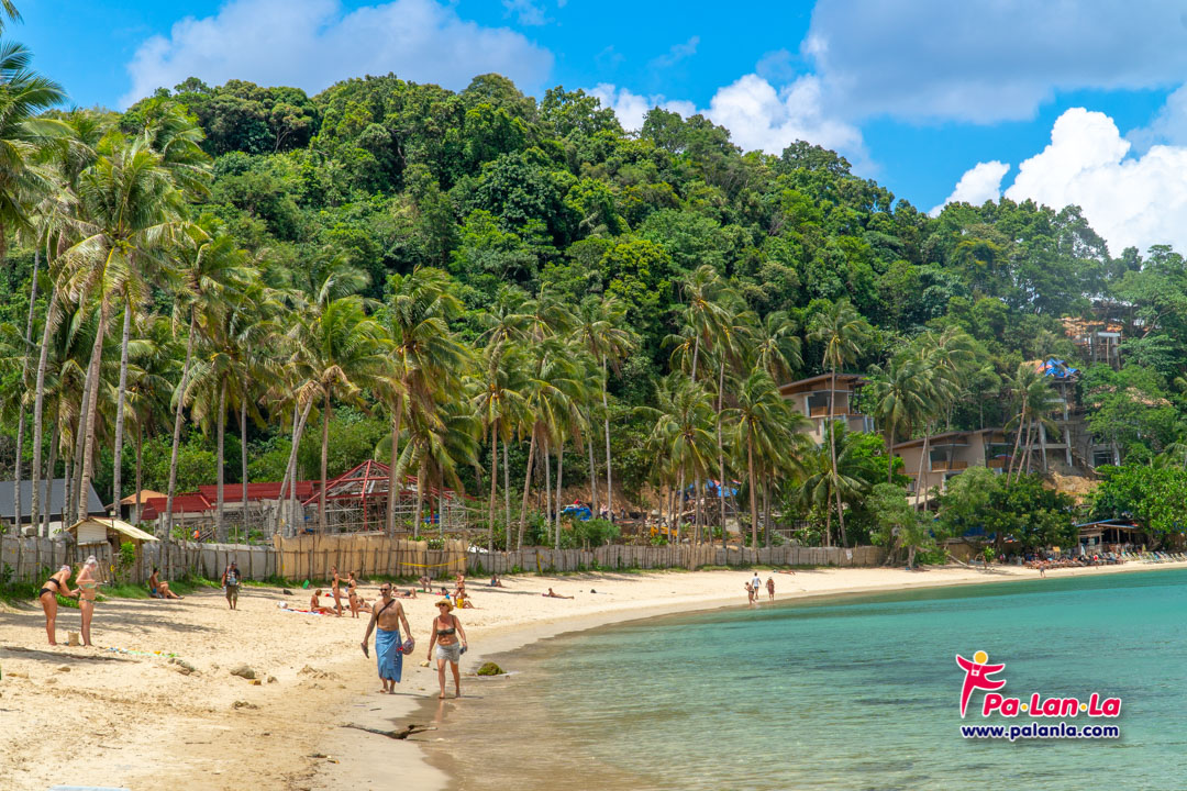 บริเวณหน้าชายหาดที่มีนักท่องเที่ยวมาพักผ่อนหย่อนใจ