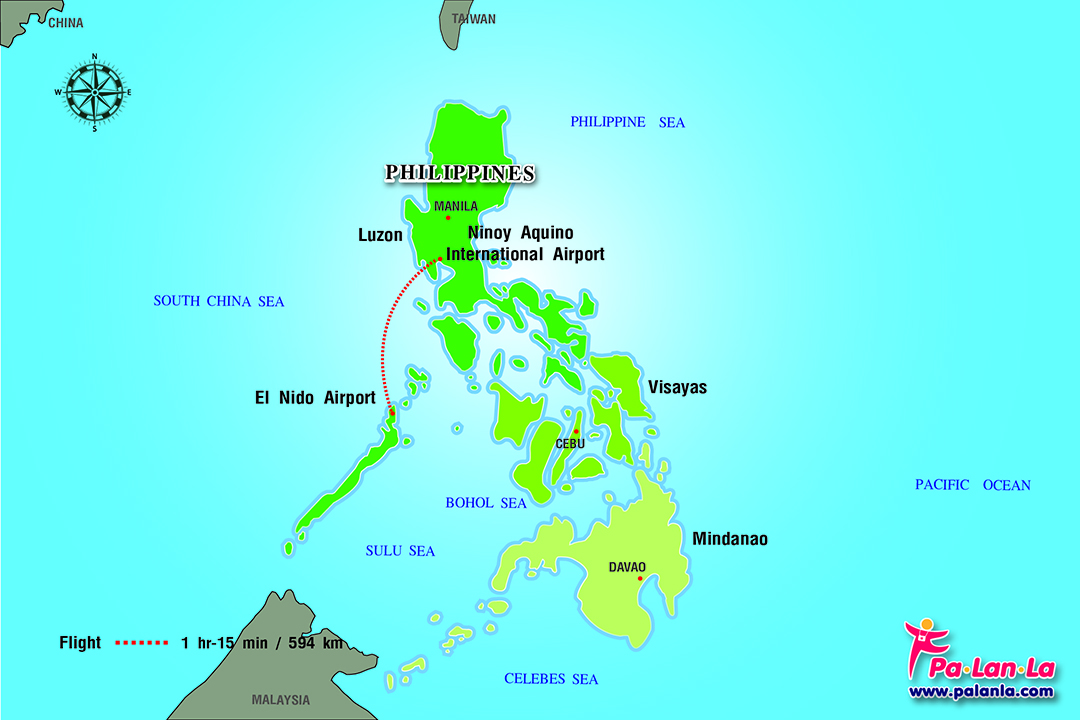 - เครื่องบิน เป็นการบินตรงมาลงที่เมืองเอลนิโด้ ใช้เวลาในการเดินทางประมาณ 1.10 ชั่วโมง โดยสายการบิน Air Swift ซึ่งเป็นสายการบินเดียวที่บินตรงจากกรุงมะนิลามายังเมืองเอลนิโด้ (El Nido Airport) หรือ Lio Airport ชื่ออย่างเป็นทางการนั่นเอง ไป-กลับเริ่มต้นที่ราคาประมาณ 6,000 เปโซฟิลิปปินส์ และมีเพียงไม่กี่เที่ยวต่อวัน ตรวจสอบเที่ยวบินจากแอร์สวิฟท์ได้ที่ https://air-swift.com/