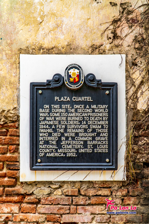 Plaza Cuartel สร้างขึ้นในช่วงทศวรรษที่ 1940 โดยพลาซ่าคูสเทลเคยทำหน้าที่เป็นฐานที่มั่นของทหารอเมริกันและฟิลิปปินส์จนกระทั่งพวกเขาถูกบุกรุกโดยชาวญี่ปุ่น ป้อมปราการตรงนี้จึงเคยเป็นที่กำบังของเหล่านักรบที่และได้กลายเป็นเรือนจำของพวกเขาแทนในเวลาต่อมา