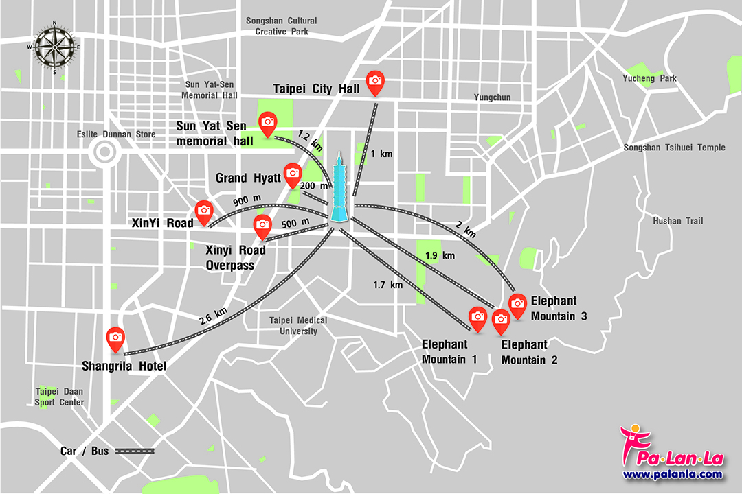 ด้วยความสูงถึง 509 เมตรของตัวอาคาร ทำให้ไม่ว่าจะอยู่ในมุมใดของเมือง ก็มีโอกาสที่จะมองเห็นอาคาร Taipei 101 อยู่เสมอ จนมีมุมถ่ายภาพสวยๆ มากมายที่ palanla.com ได้ออกเดินทางไปเก็บรวบรวมและนำมาแนะนำให้กับทุกคนที่มีแผนการเดินทางท่องเที่ยวที่ไต้หวัน