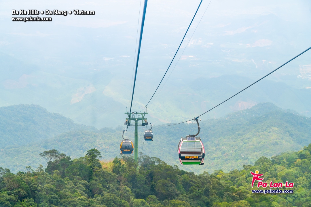 การเดินทางจากตีนเขาขึ้นไปบานาฮิลล์ นั้นต้องนั่งกระเช้าไฟฟ้าที่ชื่อว่า Ba Na Hills Cable Car ขึ้นไปประมาณ 15 นาที ทัศนียภาพเบื้องล่างเส้นทางกระเช้าไฟฟ้านั้นงดงามและสดชื่นด้วยสีเขียวของผืนป่า น้ำตก ลำธาร และไอหมอก Ba Na Hills Cable Car เริ่มเปิดใช้งานอย่างเป็นทางการครั้งแรกเมื่อเดือนมีนาคม ค.ศ. 2009 สร้างขึ้นตามมาตรฐานยุโรปโดยบริษัทที่มีชื่อเสียงจากออสเตรเลีย มีทั้งหมด 94 เคเบิ้ล มีทั้งแบบ open air และแบบห้องกระจก แต่ละเคเบิ้ลบรรทุกผู้โดยสารได้ 10 คน