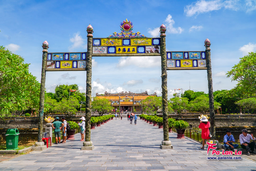 พระราชวังเว้ (Imperial Citadel Hue) พระราชวังของเวียดนามที่ได้รับอิทธิพลมาจากพระราชวังต้องห้าม ที่ปักกิ่ง ทั้งรูปแบบสถาปัตยกรรม สี สัญลักษณ์ และตัวอักษร