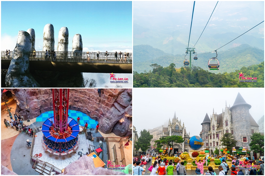 เมื่อนั่งกระเช้าไฟฟ้าขึ้นไปบนบาน่าฮิลส์ นักท่องเที่ยวจะได้พบกับวิลล่าสวยงามแบบฝรั่งเศส สวนดอกไม้ วัด ร้านอาหาร คาเฟ่ สวนสนุกในร่มขนาดใหญ่ที่เรียกได้ว่าเป็นเหมือนดิสนีย์แลนด์ของเวียดนามที่มีเครื่องเล่นต่างๆ มากมาย มีธีมพาร์คที่แบ่งเป็นโซนๆ รวมถึงพิพิธภัณฑ์หุ่นขี้ผึ้งคล้ายมาดามทุสโซ