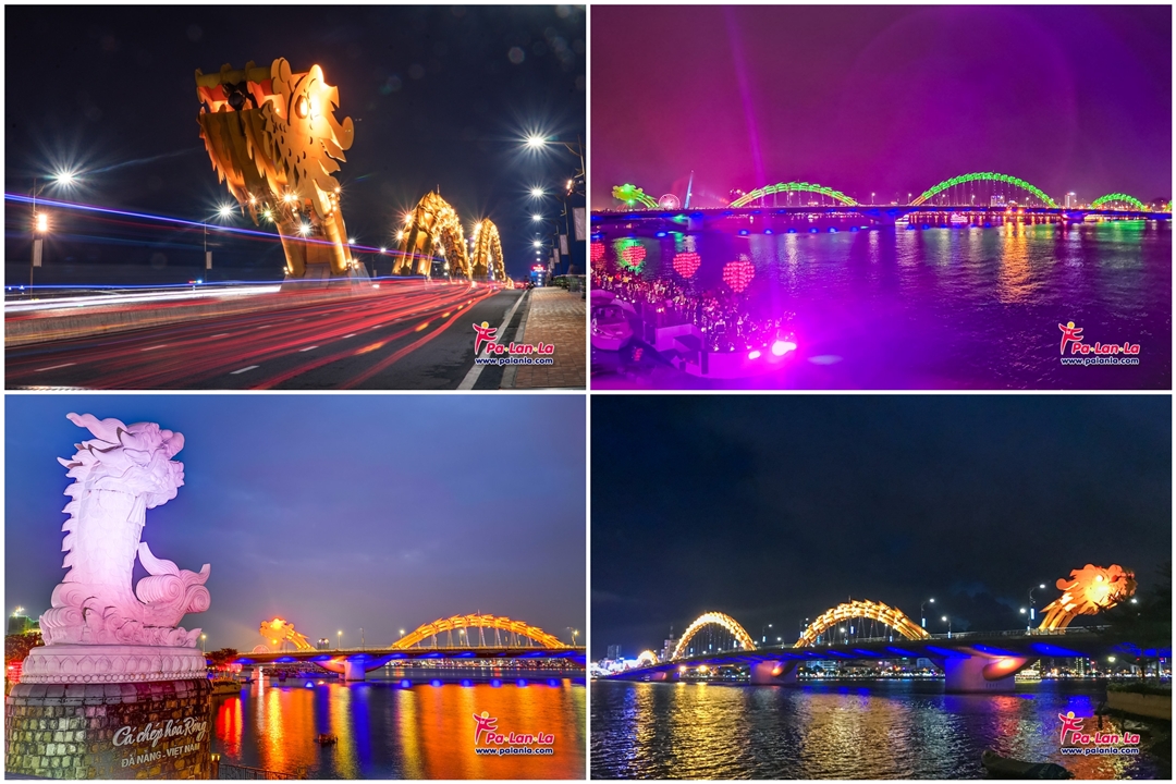 จุดเด่นของสะพานมังกรแห่งนี้ที่ดึงดูดนักท่องเที่ยวจากทั่วสารทิศ คือการแสดงไฟบนตัวมังกรที่จะเปลี่ยนสีสันสวยงามไปมาน่าตื่นตาตื่นใจ และยิ่งไปกว่านั้นยังมีไฮไลต์สำคัญคือการที่มังกรจะพ่นไฟและน้ำโชว์ในทุกๆ คืนวันเสาร์และอาทิตย์