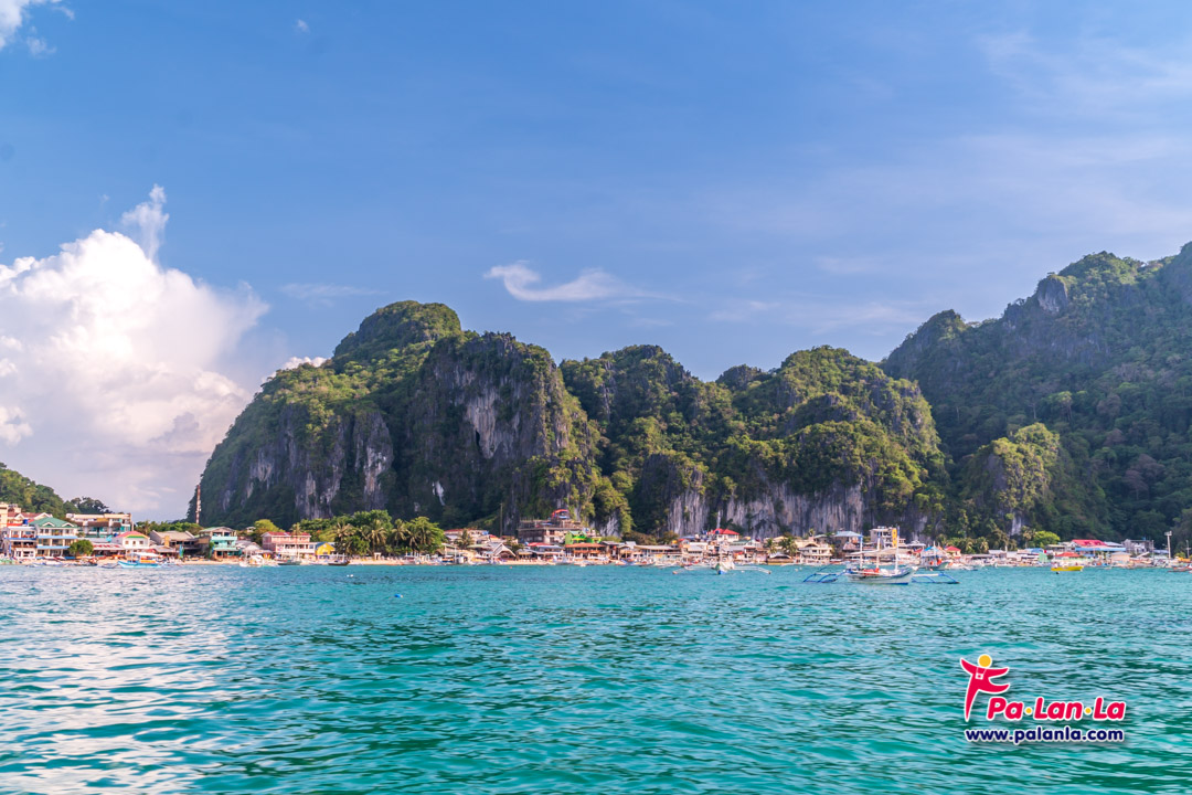 El Nido City เมื่อมองจากบริเวณน่านน้ำ