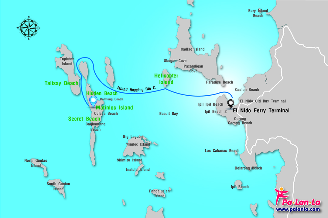 - เรือทัวร์ เมื่อนักท่องเที่ยวมาถึงเอลนิโด้แล้ว ต้องไปขึ้นเรือของบริษัททัวร์ที่ได้จองไว้บริเวณท่าเรือเฟอร์รี่ (El Nido Ferry Terminal) ซึ่งเป็นจุดนัดพบระหว่างบริษัททัวร์และลูกเรือ สามารถเลือกซื้อทัวร์ท่องเที่ยว A,B,C,D มีทั้งหมด 4 แพ็คเกจตามที่รัฐบาลกำหนด โดย Matinloc Island จัดอยู่ในแพ็คเกจ C.