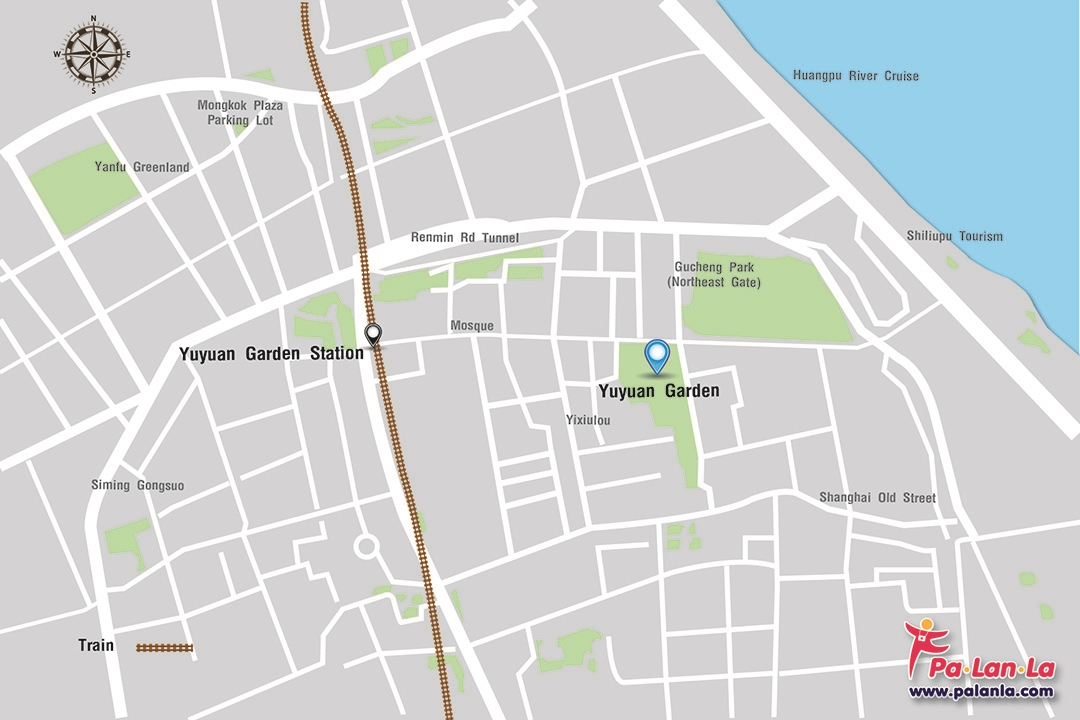 - รถไฟใต้ดิน ขึ้นรถไฟใต้ดินสาย 10 มาลงที่สถานี Yuyuan Garden จากนั้นเดินต่อไปอีกประมาณ 500 เมตร ค่ารถไฟใต้ดินในเมืองเซี่ยงไฮ้เริ่มต้นที่ 3 หยวน และเพิ่มขึ้น 1 หยวนทุกๆ 10 กิโลเมตร