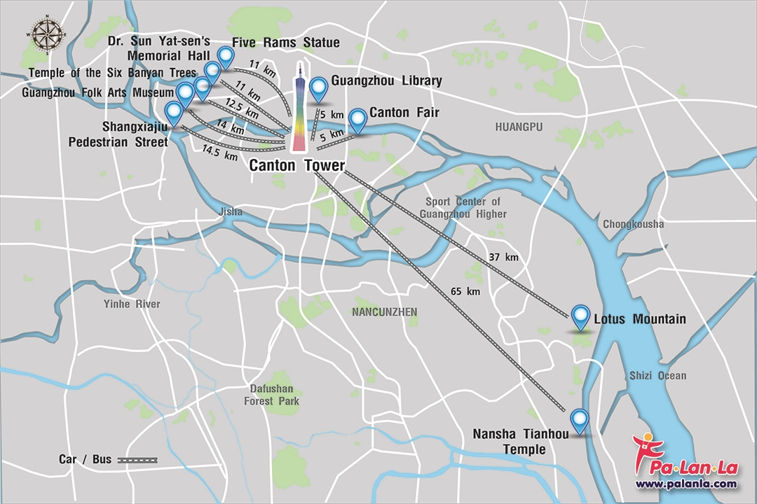 การเดินทาง : จากตัวเมืองกวางโจว ขึ้นรถไฟใต้ดินสาย 3 (สีส้ม) ไปลงที่สถานี Canton Tower ออกที่ทางออก A