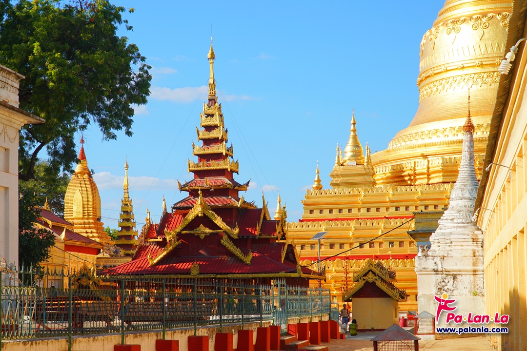 กลุ่มอาคารสไตล์พม่าภายในพื้นที่ของเจดีย์ชเวสิกอง