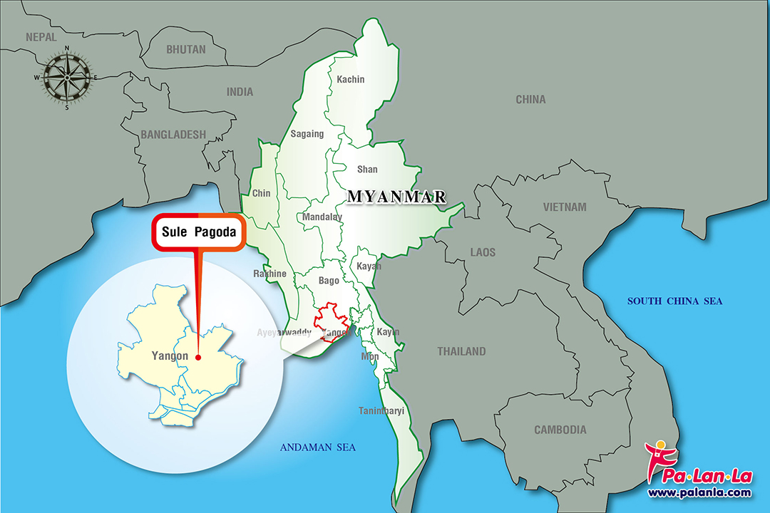 - เจดีย์สุเล เมืองย่างกุ้ง ประเทศพม่า