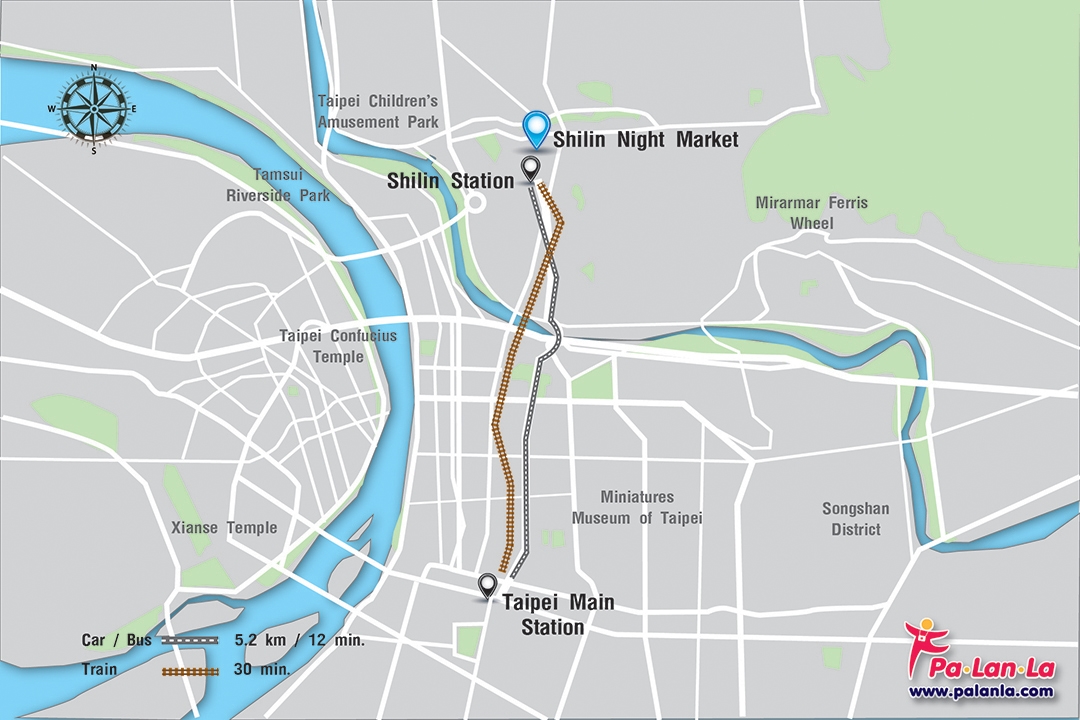 - รถไฟ นั่ง MRT สายสีแดง ไปลงที่สถานี Shilin Station จากนั้นเดินต่ออีกประมาณ 200 เมตร