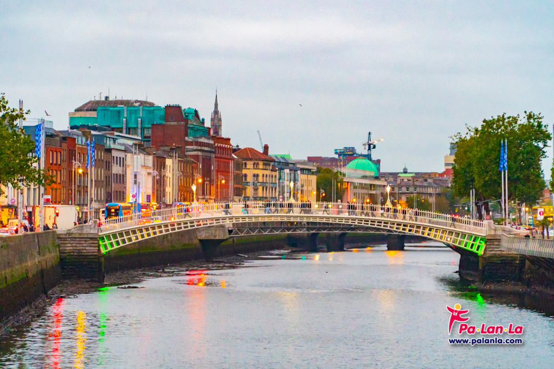 สะพานฮาพเพนนี (Ha’ penny Bridge) เป็นสะพานคนเดินที่เก่าแก่ที่สุดของเมือง ด้วยบรรยากาศอบอวลไปด้วยความโรแมนติก เหล่าคู่รักจึงมักจะจูงมือกันมาเดินเล่น เพื่อชมความงามของแสงอาทิตย์ลับขอบฟ้าในยามเย็นไปจนถึงชมแสงไฟในยามค่ำคืนของเมืองดับลิน ประเทศไอร์แลนด์