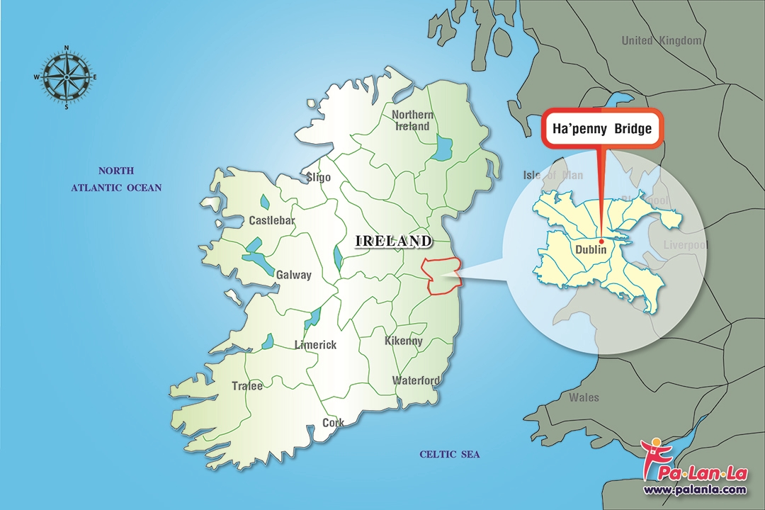 แผนที่สะพานฮาพเพนนี เมืองดับลิน ประเทศไอร์แลนด์