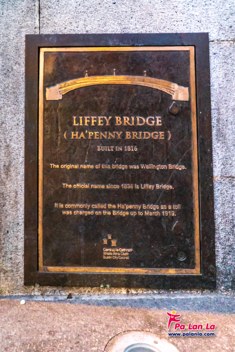 สะพานฮาพเพนนี (Ha’ penny Bridge) ทำด้วยเหล็กเป็นทรงโค้ง สร้างขึ้นในปี ค.ศ. 1816 เดิมชื่อว่า สะพานเวลลิงตัน (Wellington Bridge) ต่อมาในปี ค.ศ. 1836 จึงได้มีชื่อเป็นทางการว่า สะพานลิฟฟีย์ (Liffey Bridge) ตามชื่อแม่น้ำ แต่เนื่องจากสะพานข้ามแม่น้ำลิฟฟีย์มีหลายสะพาน จึงไม่ค่อยมีคนที่เรียกชื่อที่เป็นทางการนี้มากนัก ต่อมาจึงได้เปลี่ยนชื่อเป็นสะพานฮาพเพนนี ในเดือนมีนาคม ปี ค.ศ. 1919