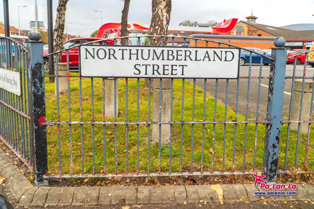 บริเวณถนนนอร์ทอัมเบอร์แลนด์ (Northumberland) ที่ตั้งของกำแพงสันติภาพ