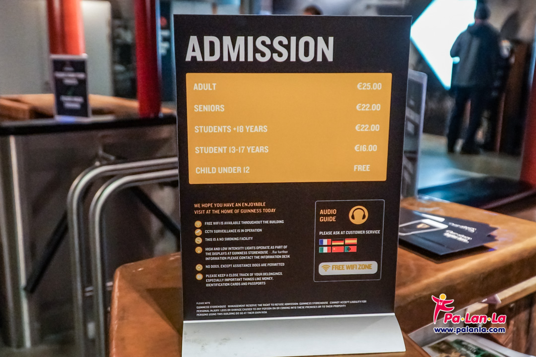 ในการเข้าชม นักท่องเที่ยวสามารถจองล่วงหน้าได้ผ่านเว็บไซต์ https://www.guinness-storehouse.com/en/ ขณะเข้าชมสามารถเลือกเสียงบรรยายได้หลายภาษา เช่น ฝรั่งเศส อิตาเลี่ยน เสปน เยอรมัน โปรตุเกส ภาษาจีน เป็นต้น